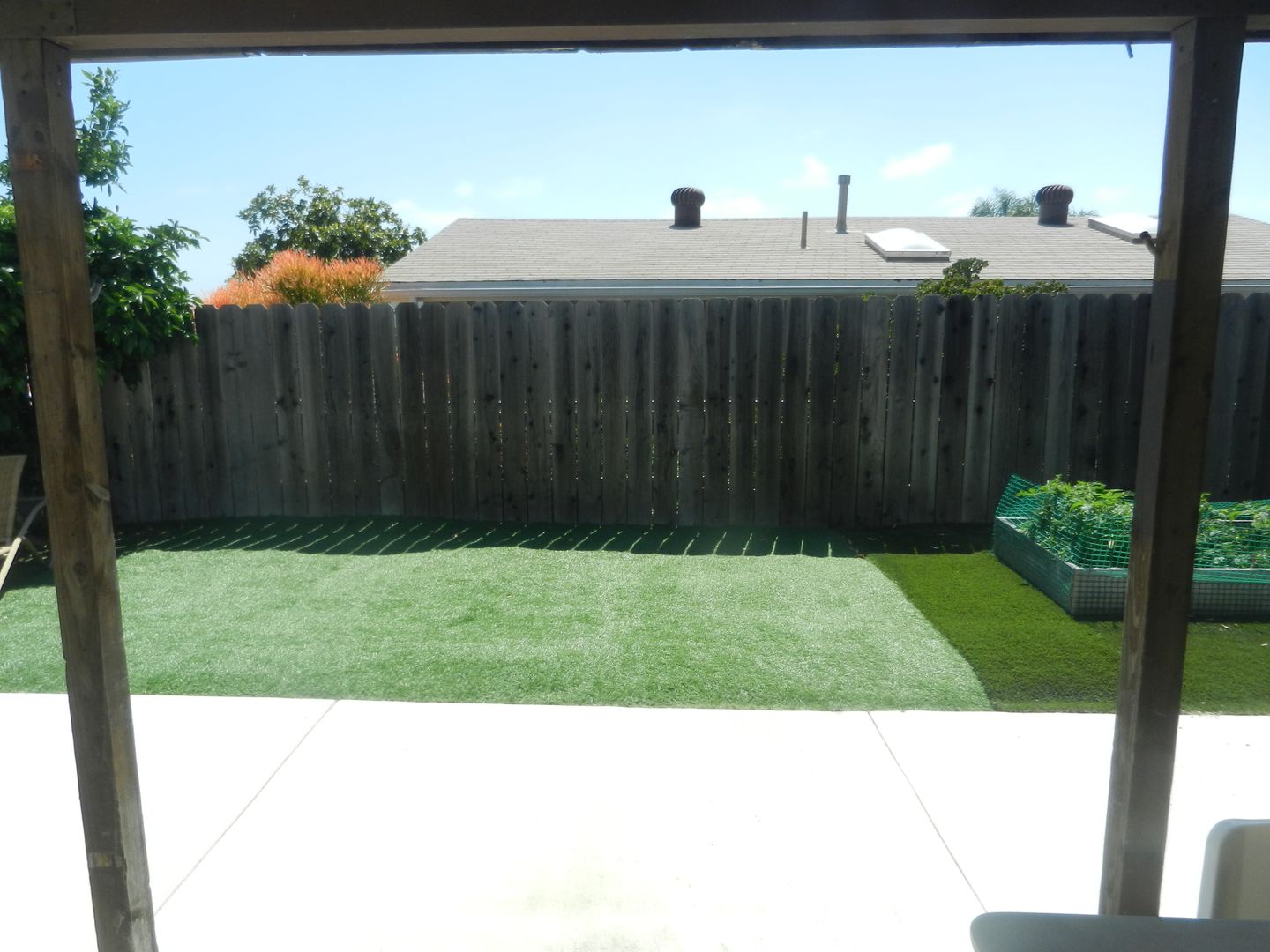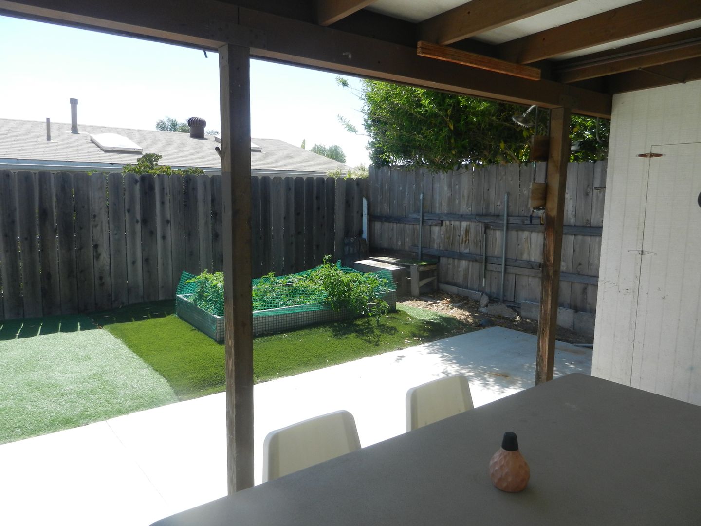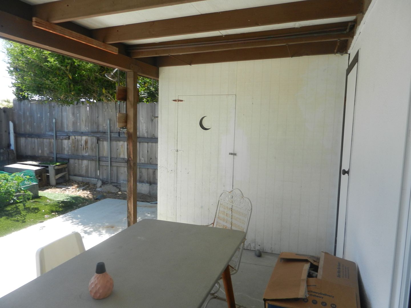 Covered patio with Extra storage in shed and garage.