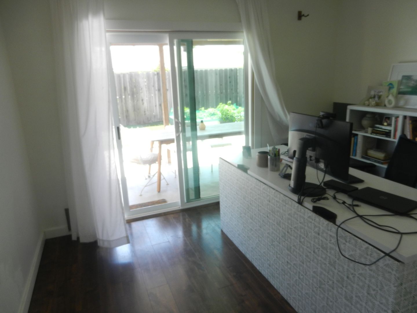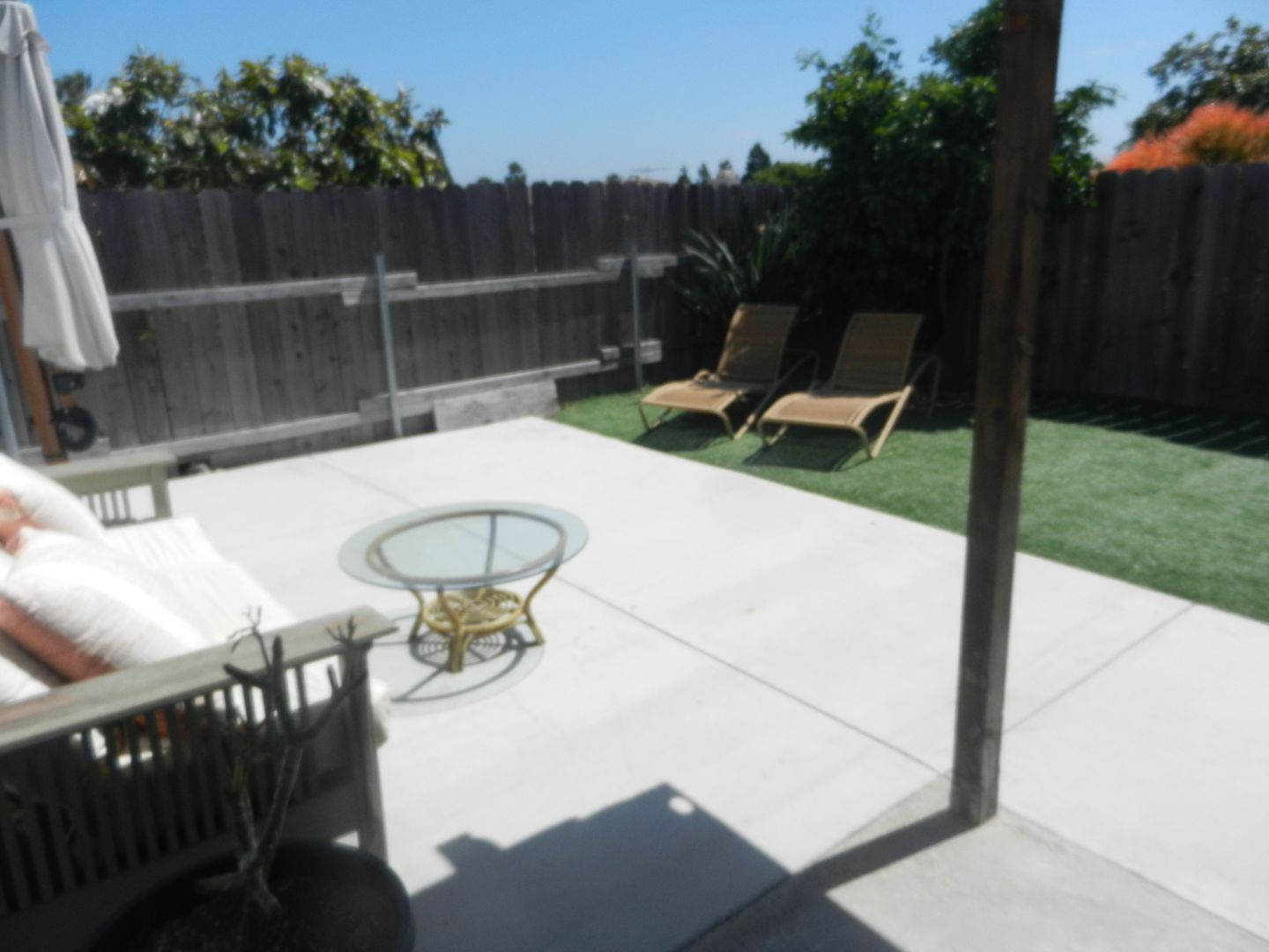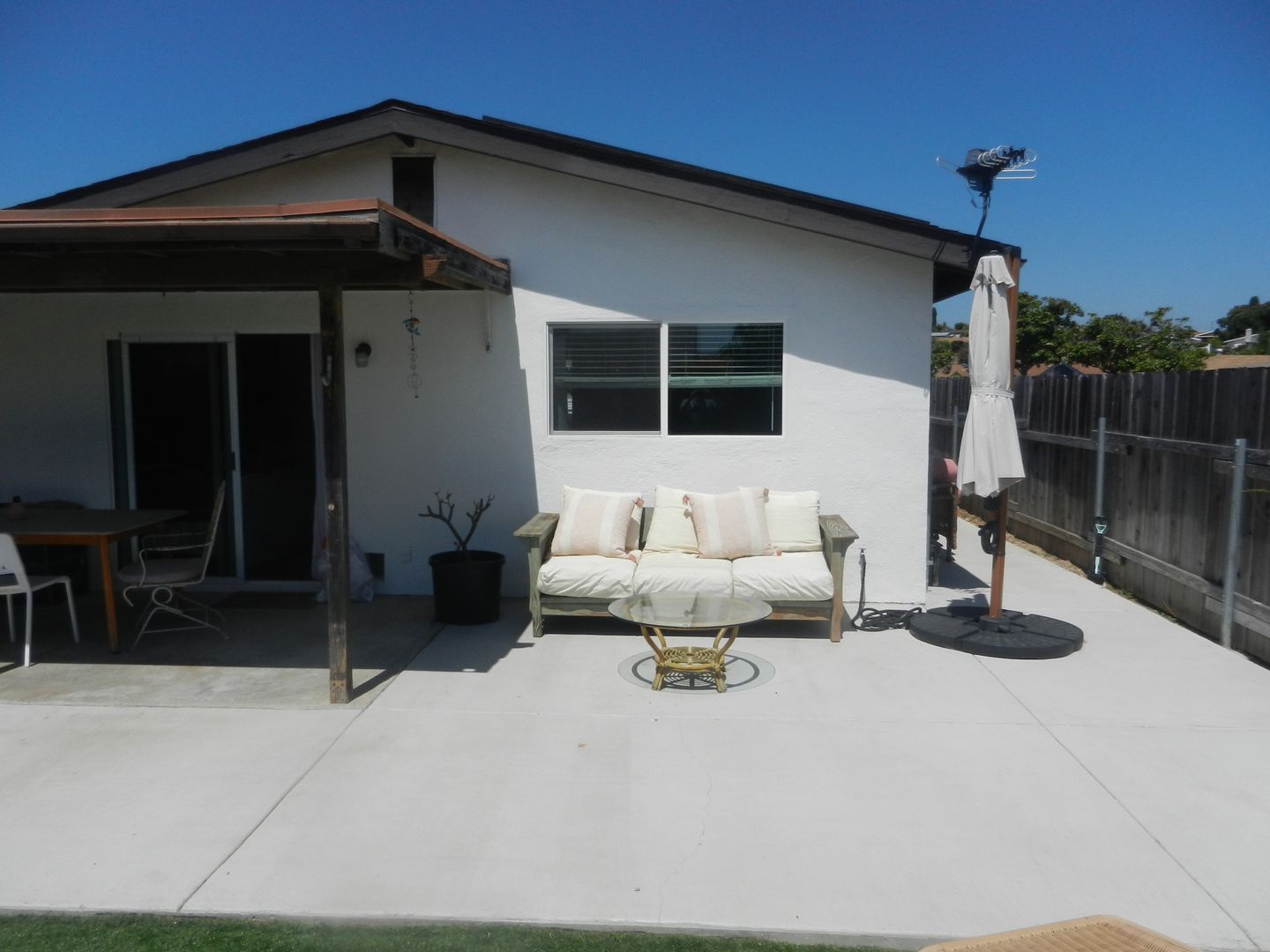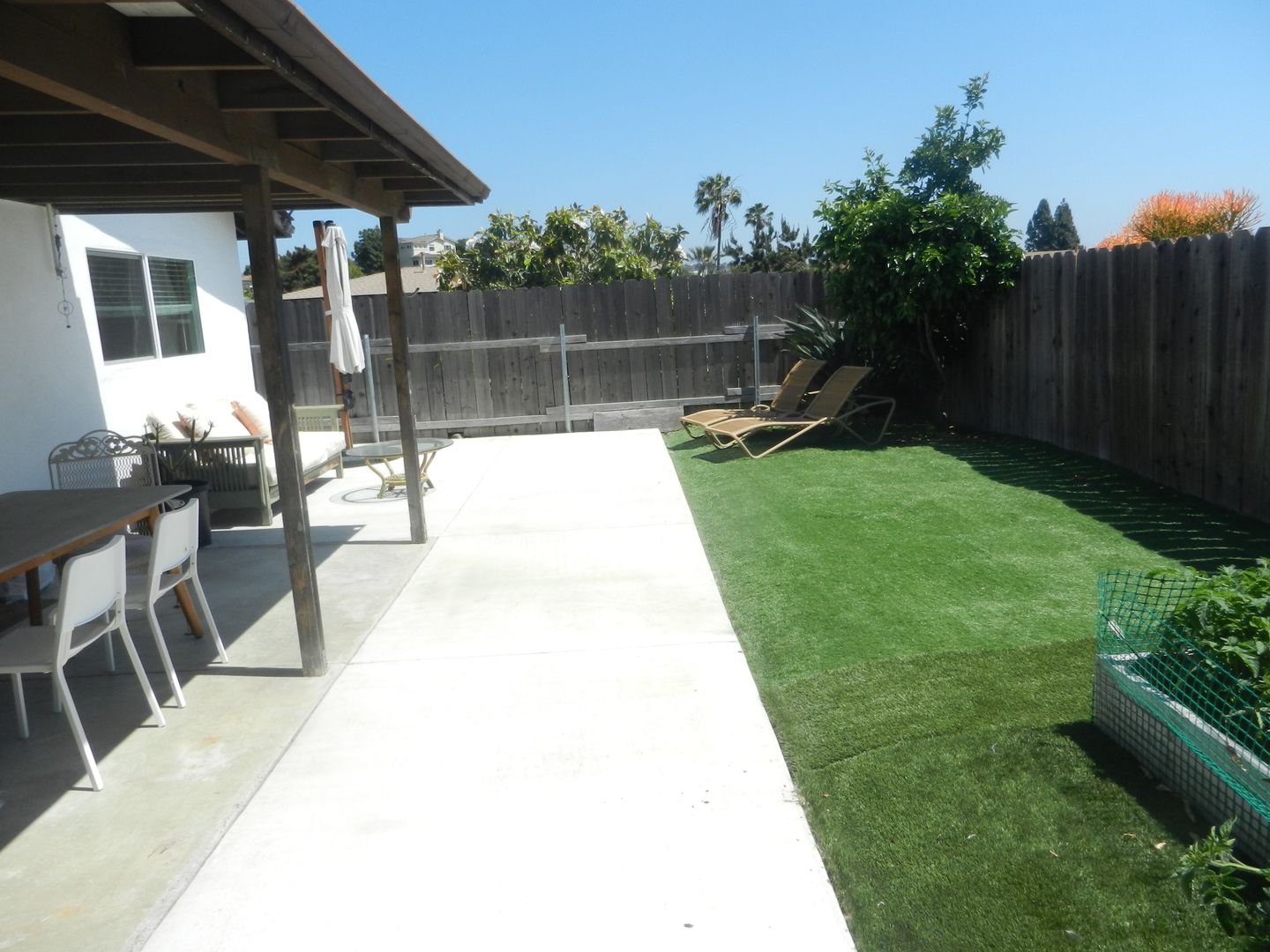 Covered patio with Extra storage in shed and garage.
