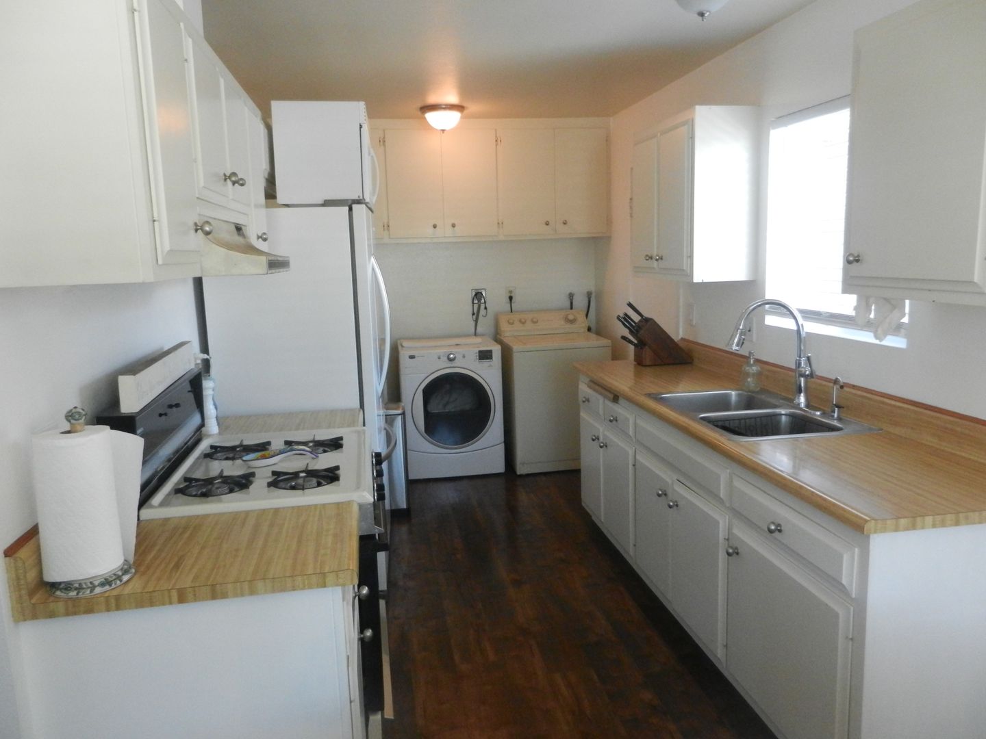 Refrigerator, Washer and Dryer included, with no warranties.