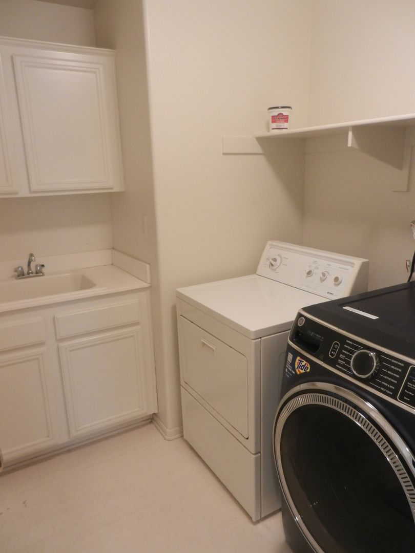 Upstairs Laundry Room with washer & dryer and sink.