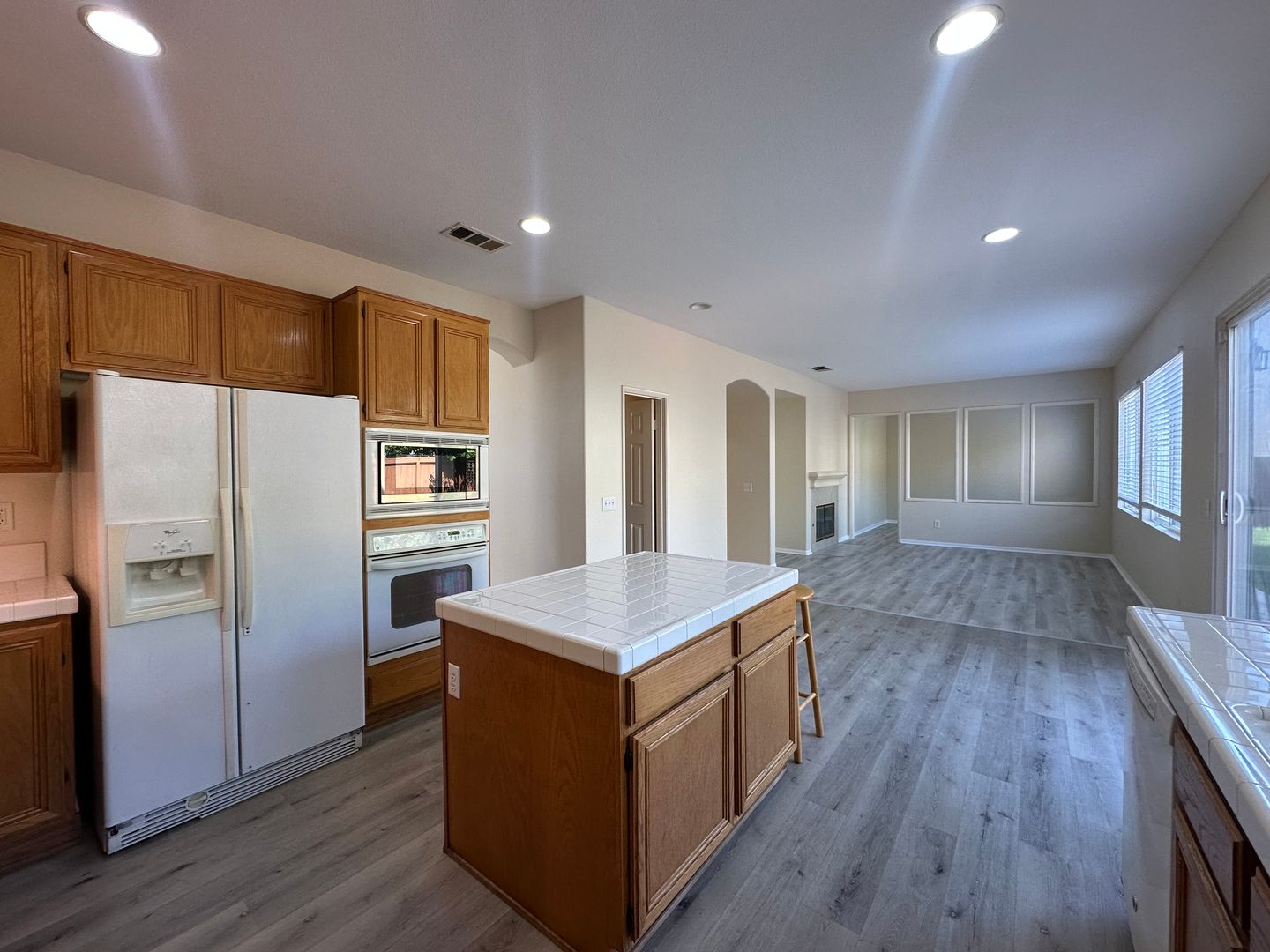 Kitchen with eat in area that is adjacent to the cozy living room.
