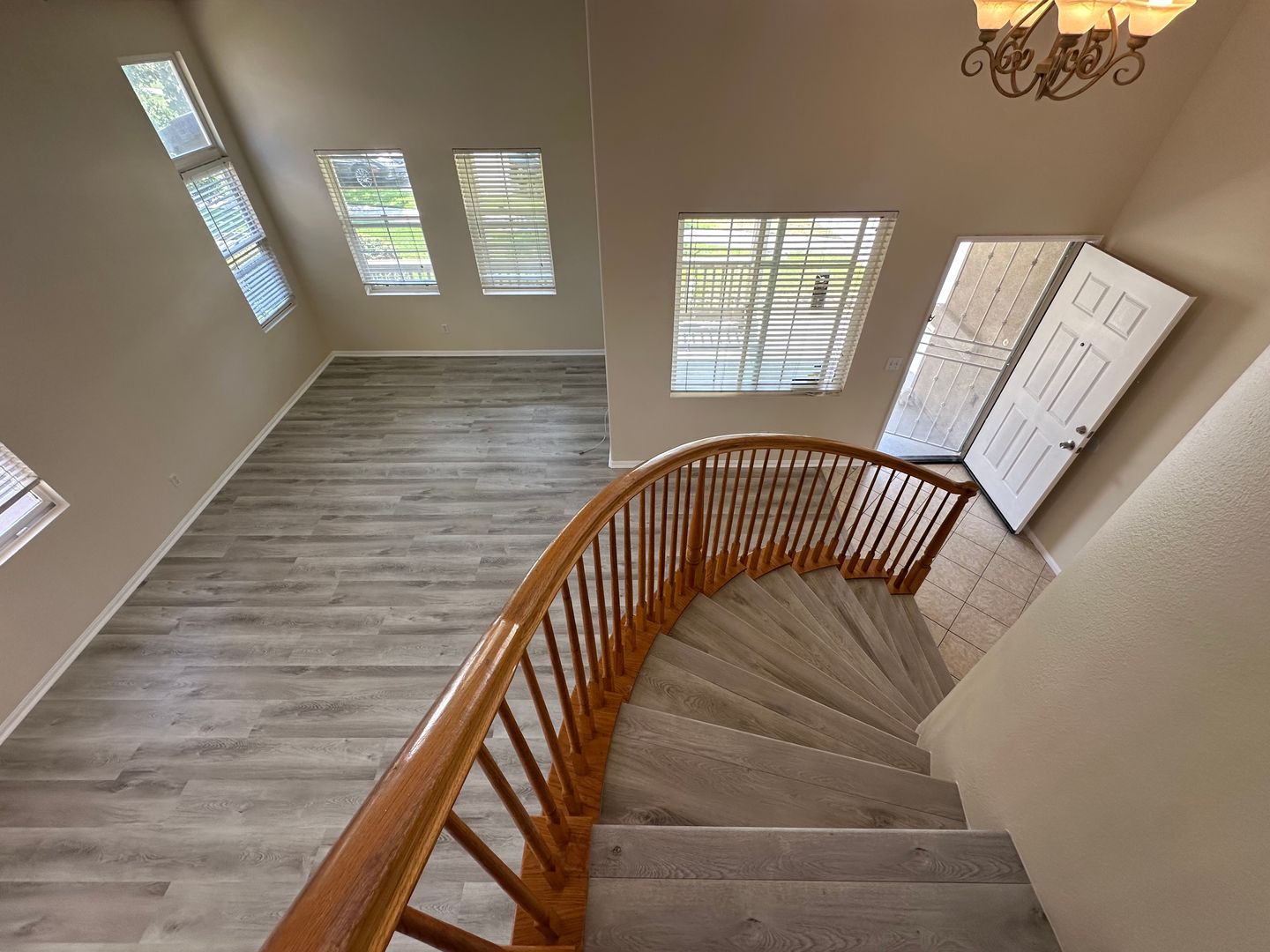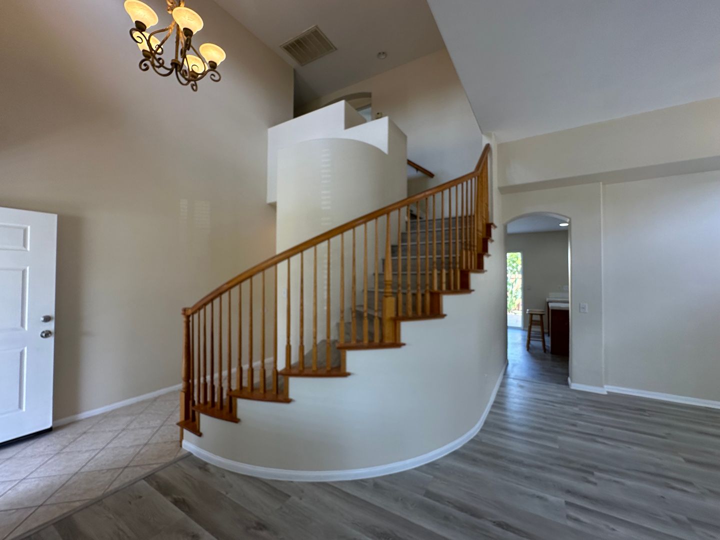 Dramatic high ceiling and inviting front porch to welcome you home.